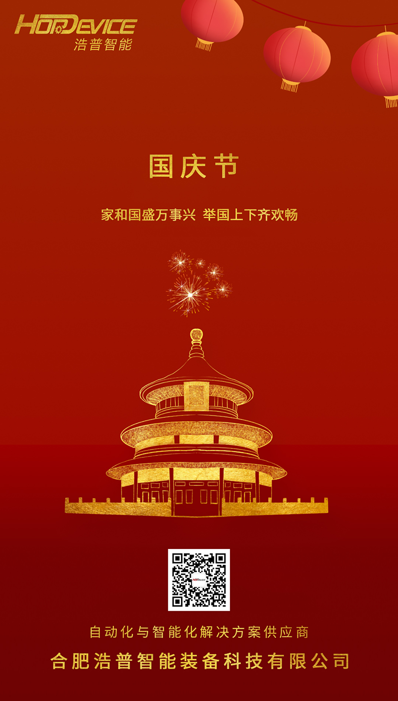 “家和國盛萬事興 舉國上下齊歡暢”。值此國慶節(jié)即將來臨之際,浩普智能感謝大家一路的支持與厚愛,提前祝大家國慶節(jié)快樂;祝愿我們偉大的祖國永遠(yuǎn)繁榮昌盛!
